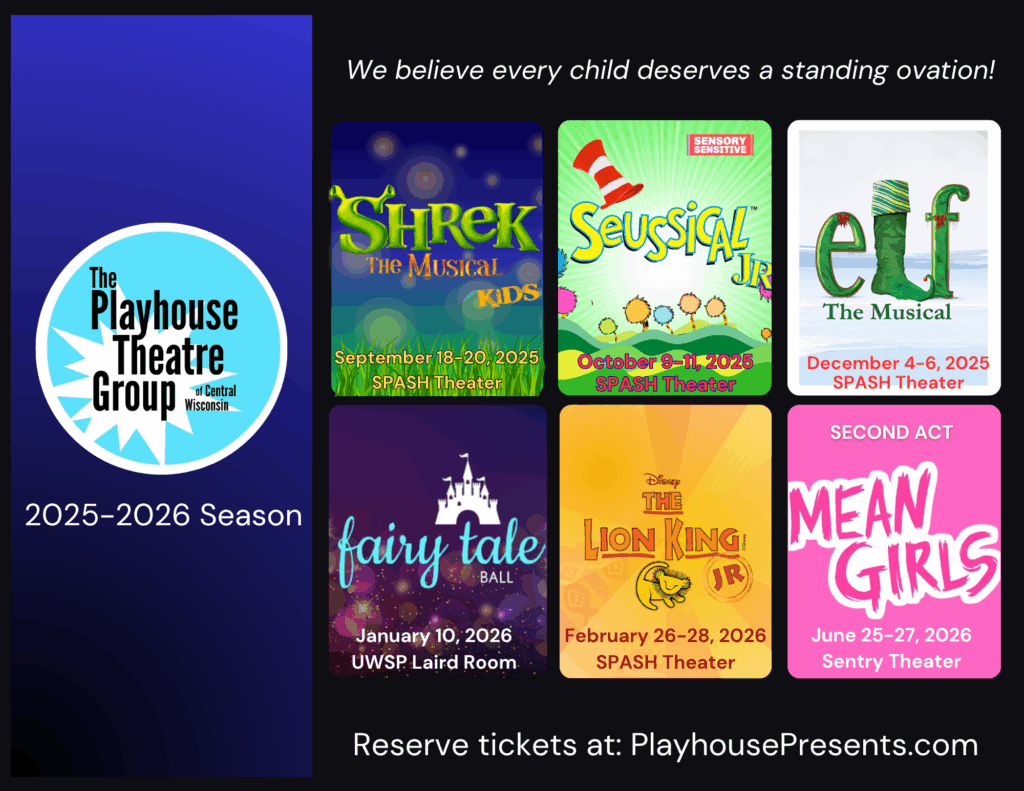 The Playhouse Theatre Group is a nonprofit children’s theatre that is committed to providing Educational and Performing Arts opportunities for young people in Central Wisconsin.